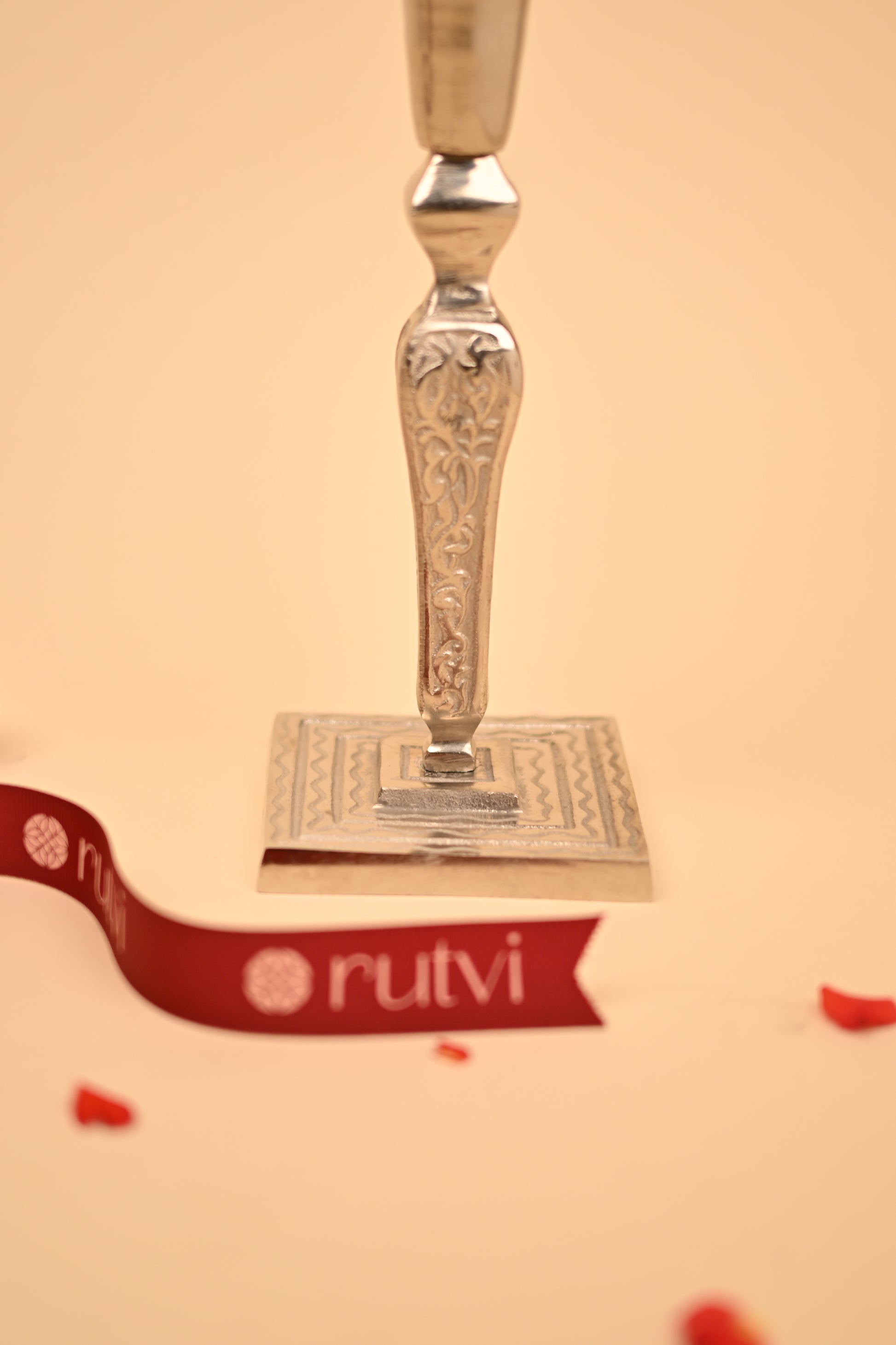 lluminate your home with this handcrafted German Silver Candle Stand, featuring a sleek yet traditional design with a lustrous silver finish. Perfect for festive décor, candle lighting during pooja, or as a table centerpiece, it combines elegance with timeless artistry.