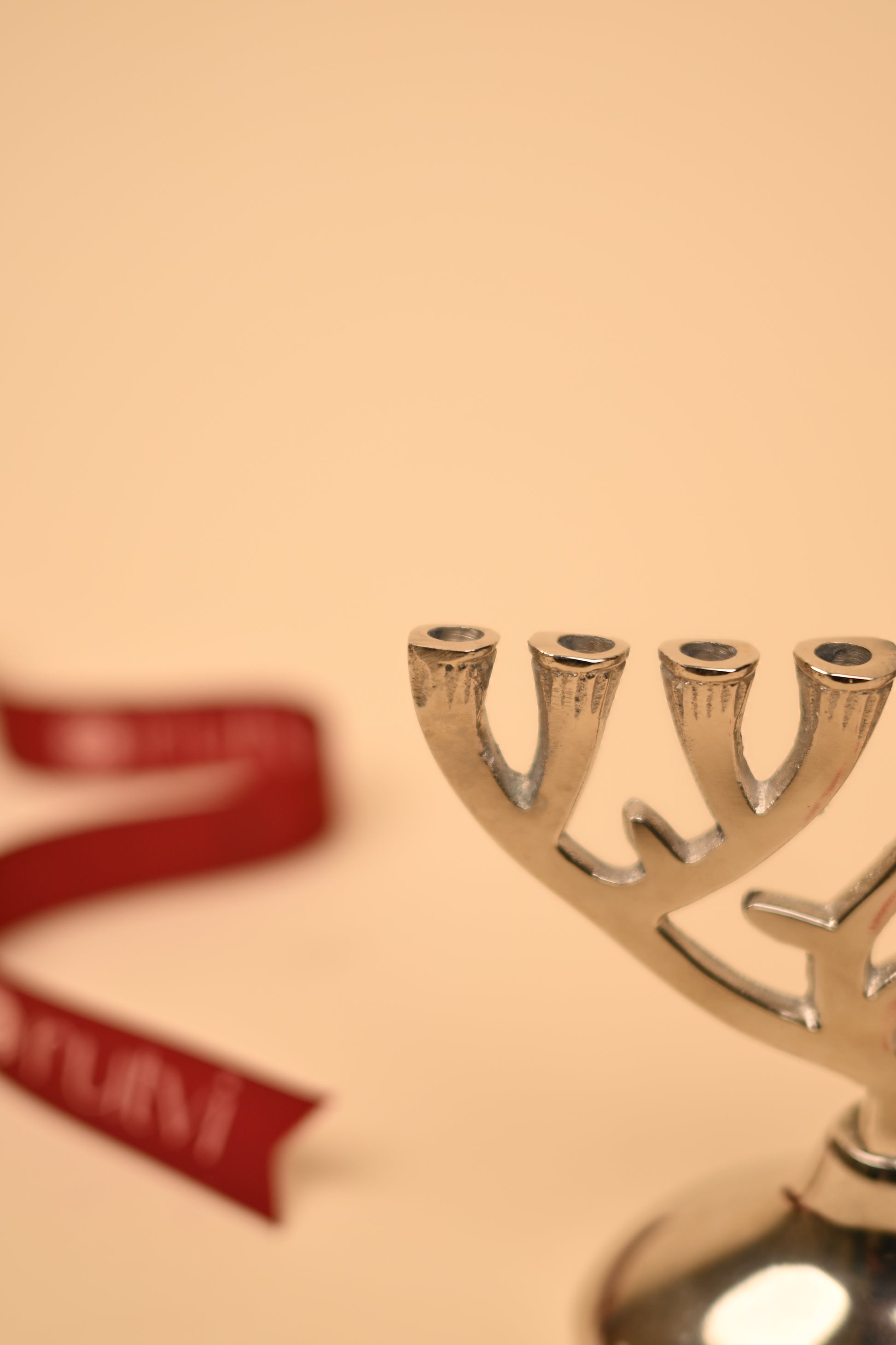 German Silver Hanukkah Candle Stand – Handcrafted Festival Candle Holder