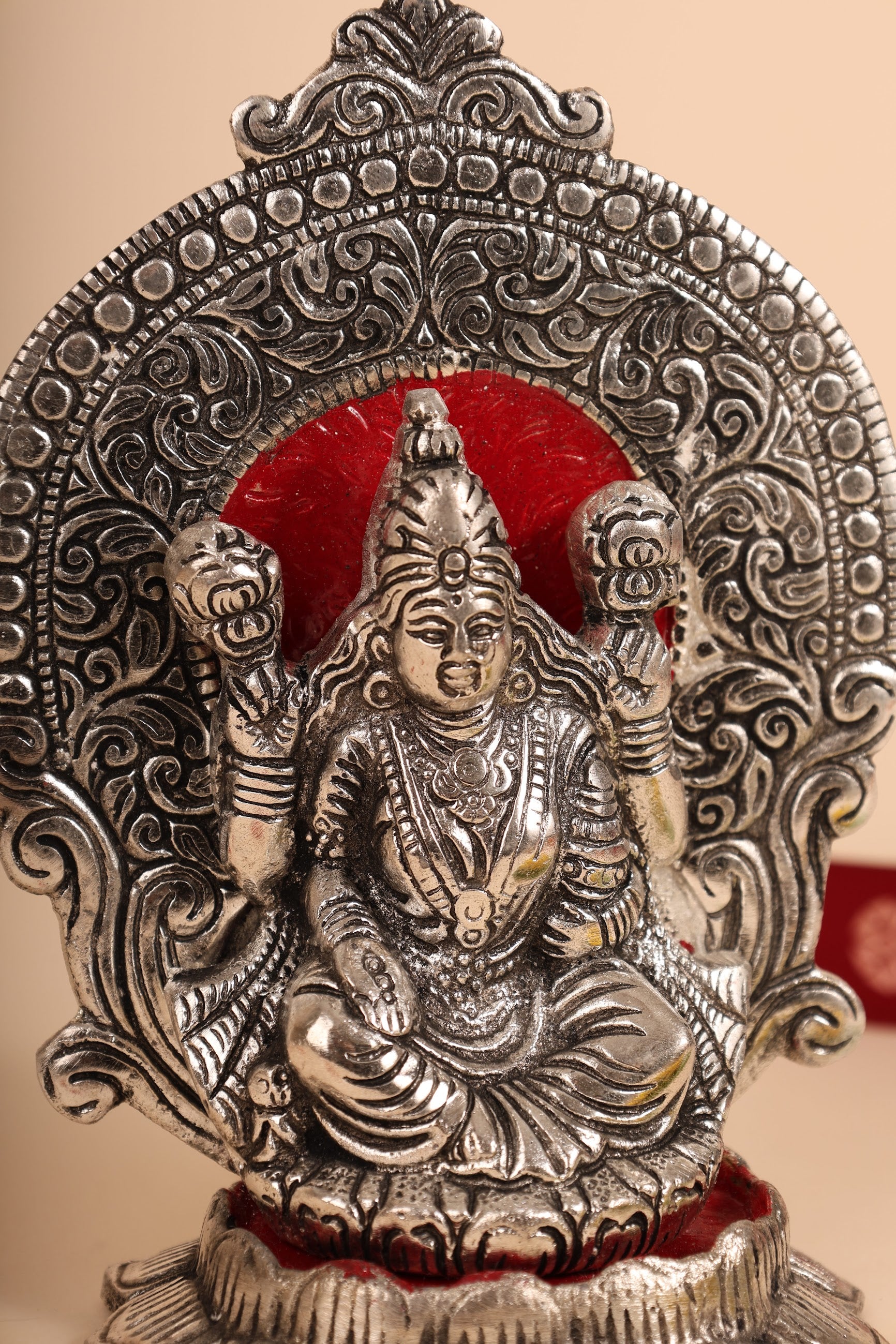 German Silver Laxmi Idol – Handcrafted Goddess Lakshmi Murti for Wealth & Pooja Room Décor
