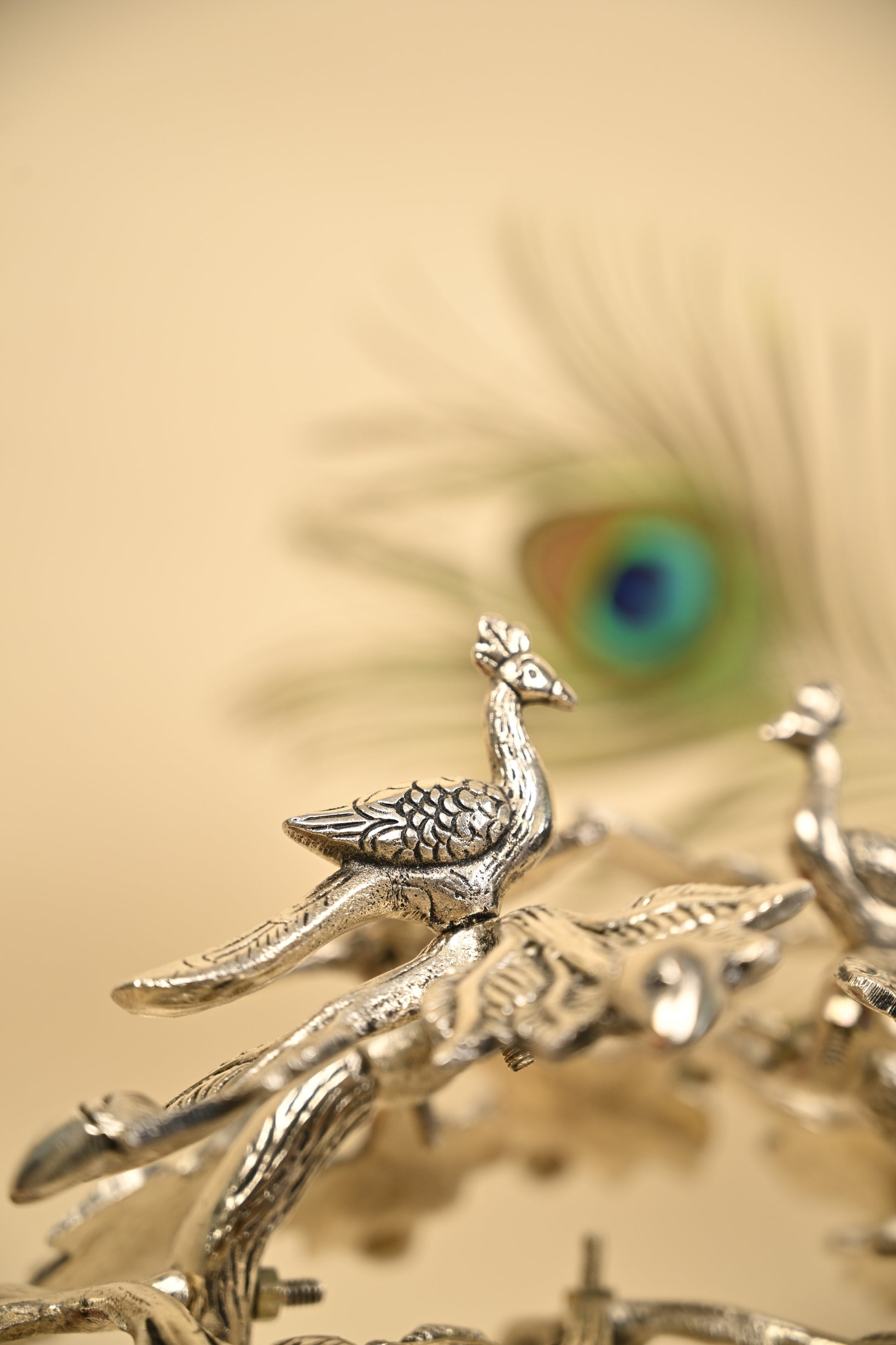 Radha Krishna & Cow Under Tree Idol – German Silver Decorative Statue for Home Temple & Auspicious Gifting